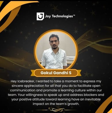 Awarded ‘Ice Breaker’ at Joy Technologies – Celebrating Team Spirit & Leadership